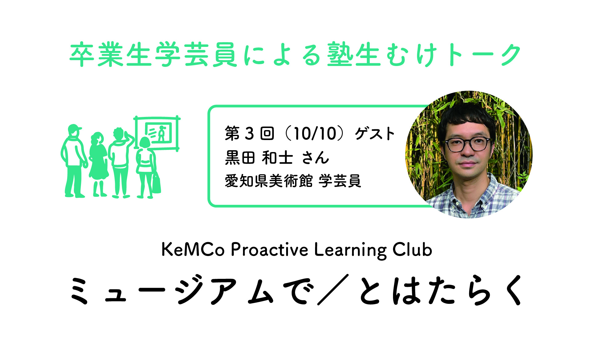 ※KeMCo Proactive Learning Club(KeMCo PLC)は、アートやカルチャーへの問題意識を持つ学生と協働して、ディスカッションのプロセスを重視しながら学生主体の企画を展開するイベント・シリーズです。